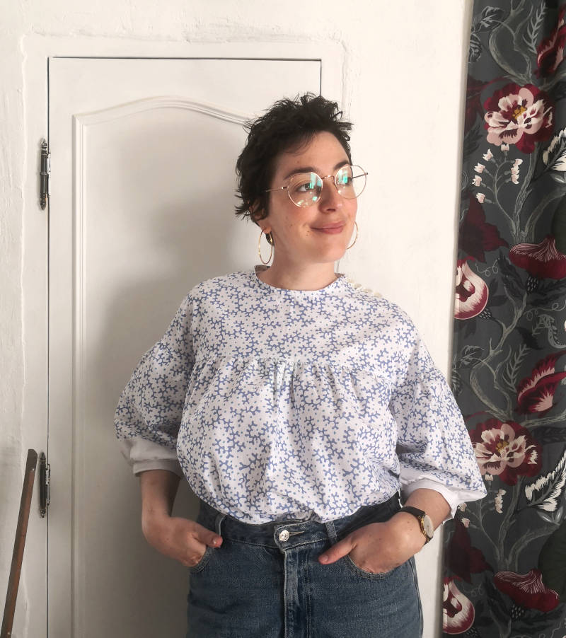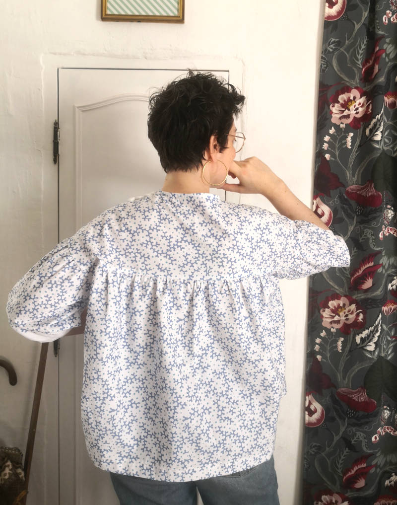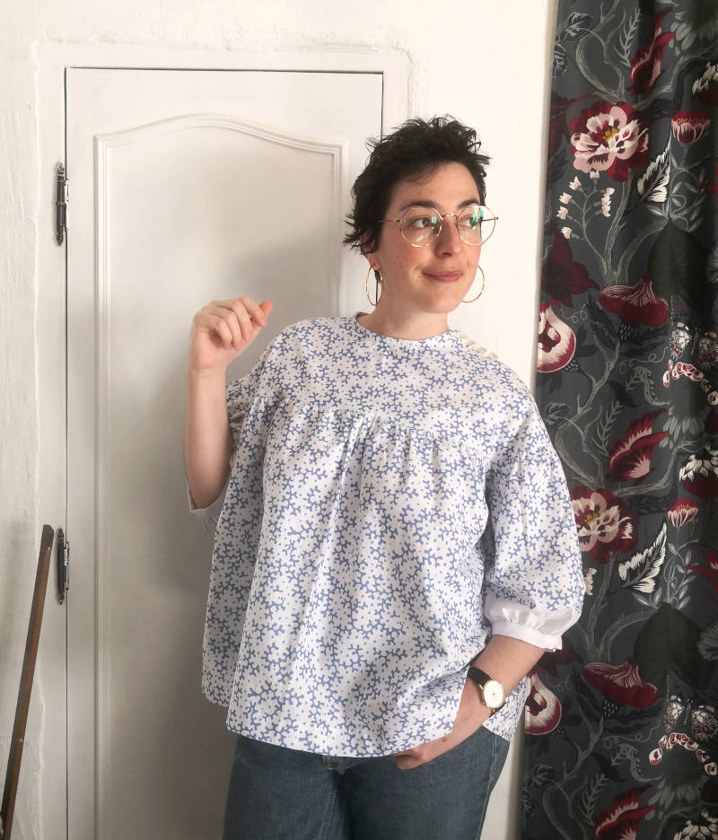Une blouse Edda dans un tissu Tissoeurs éditions