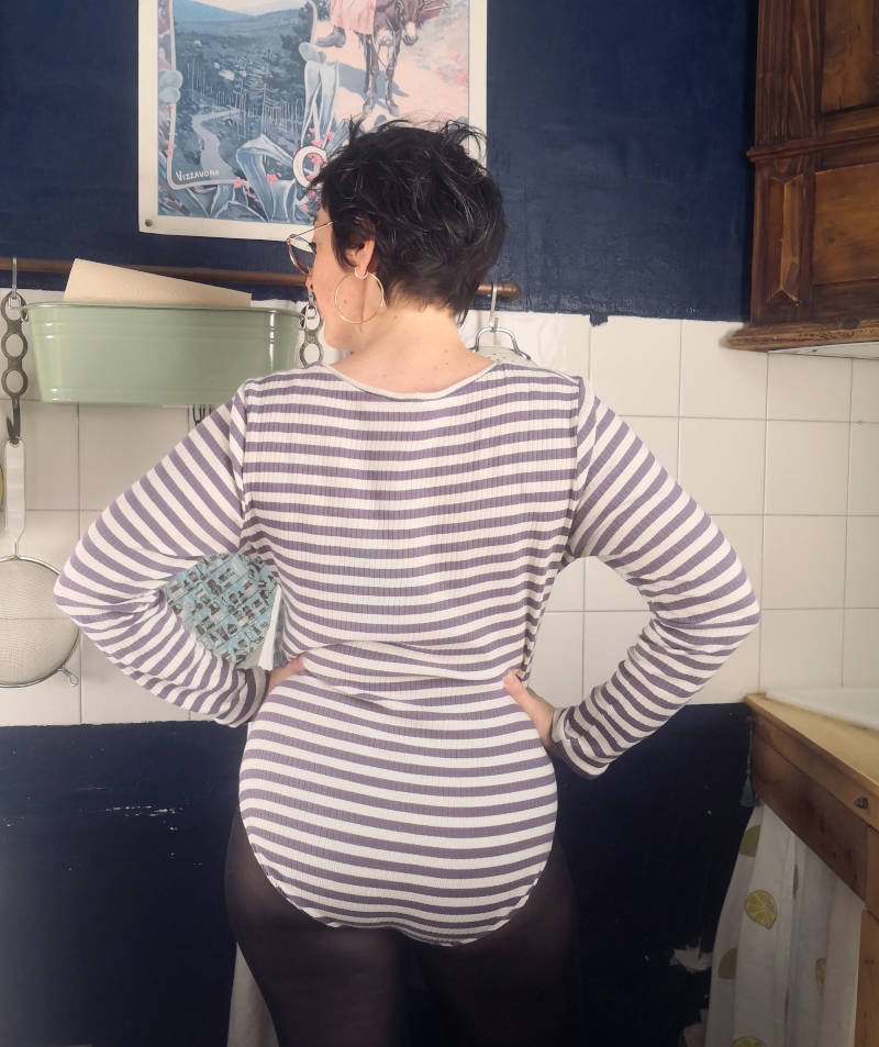 Bref, je suis très déçue par ce body, dont j’attendais beaucoup et dont je trouve le rendu assez moche. Comme je n’aime pas rester sur un échec, je pense que je retenterai une version dans un jersey plus nerveux. Si vous avez une idée des ajustements à faire pour améliorer tout ça, n’hésitez pas à m’en faire part.